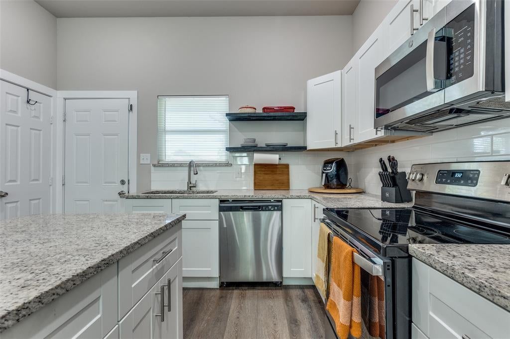Discover modern living in this beautifully built 2022 duplex located in the vibrant heart of Fort Worth, just minutes from Downtown, Magnolia Avenue, South Main Street, the Hospital District, TCU, and Dickies Arena. Tucked near the Historic Southside, this hidden gem offers a perfect blend of comfort and convenience. Both units were recently vacated and have already been re-leased, ensuring no long-term vacancy. New tenants are secured at $1,800 per month each, with one lease beginning October 1st (18-month term) and the other starting October 13th (12-month term). Both units have a bright and open layout featuring a stylish kitchen equipped with stainless steel appliances, granite countertops, a pantry, subway tile backsplash, and clear views into the dining and living areas. The main floor also features a half bath and a full-sized laundry room. Upstairs, you'll find a flexible loft space ideal for a home office or second living area, along with two generously sized bedrooms and two full bathrooms. The primary suite boasts a walk-in closet and private en-suite bath with a granite vanity and a stand-up shower. The home's neutral color palette creates a warm and welcoming feel throughout. Outside, you'll find a fenced backyard with an electric gate entrance, a covered patio, and two dedicated parking spaces per unit.