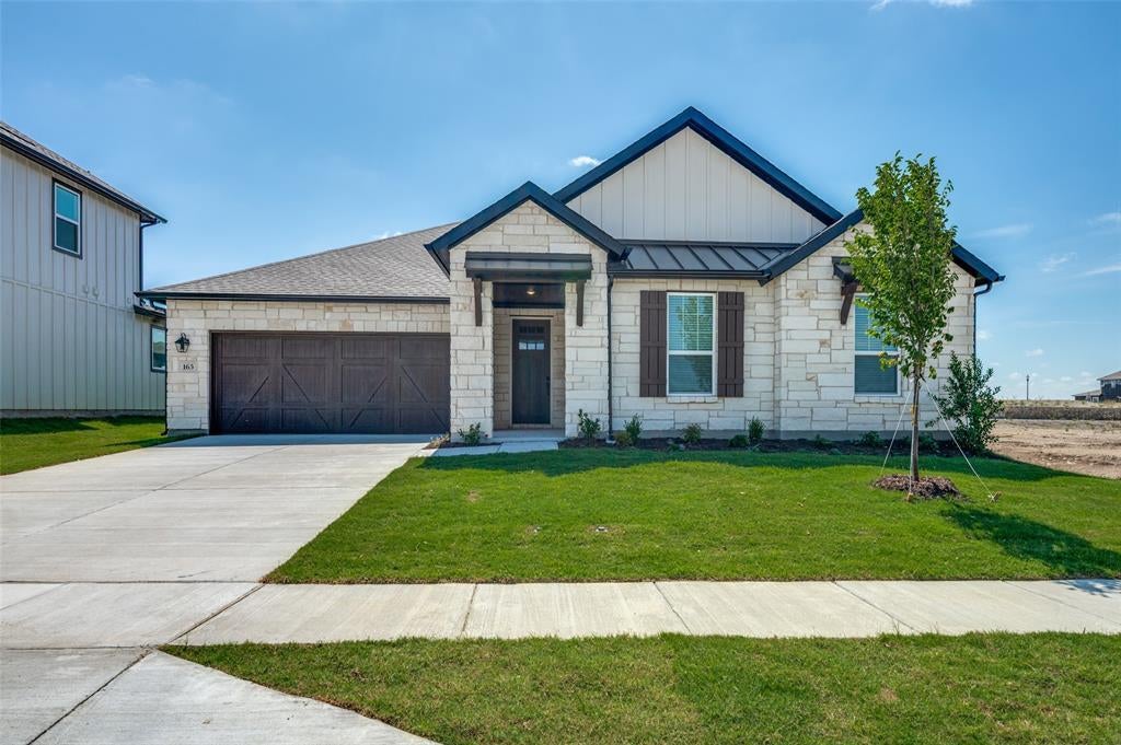 Highly Sought-After ALEDO ISD! Discover modern living in this single-story home with a seamlessly flowing open concept kitchen and living area under 9’ ceilings. Embrace style with quartz countertops, stainless steel appliances, and a gas range stove in the kitchen, while enjoying the extended covered patio and lush backyard with automatic sprinklers. The primary bath boasts an extended vanity, separate tub and shower, and elegant finishes. With decorative touches like stone veneer exterior and smart home features including a Wi-Fi oven and smart thermostat, this home truly offers effortless living.