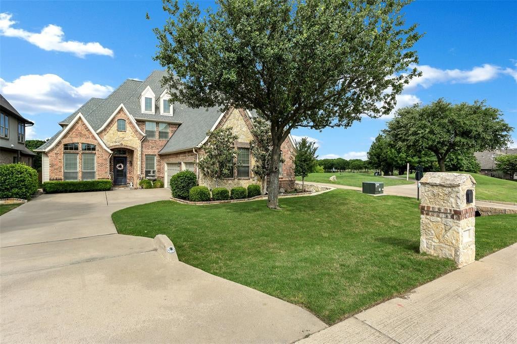 Lock & leave this luxurious home in 24-7 guarded waterfront community located on pristine 18 hole golf course lot. This stunning residence features 4 bedrooms, 4.5 baths, 2 living, formal dining, media & game rms plus spacious study featuring coffer beamed ceiling, plantation shutters & magnificent moldings. Upscale appliances, including Jenn-air & Bosch, ensuring the highest culinary standards along with butlers pantry for a chef’s delight while entertaining with ease. Elegant wood floors, & extensive crown molding, along with archways, art niches, & elegant fixtures create a refined ambiance throughout. Spacious primary suite offers a tranquil retreat overlooking golf course. Versatile room currently serves as a bar but would be the perfect spot for a nursery next to the primary suite. Living area with floor to ceiling brick & stone, gas log fireplace, & electric shades. Upstairs features include media with bar sink, next to half bath & billiard-game room overlooking spacious covered balcony with scenic views of golf course. Secondary bedroom with golf course view & private bath. 3rd bedroom plus bath. 4th bedroom has been converted to full room closet & private sitting rm. This unique room could be workout rm, sewing room playroom or converted back to another bedroom with walk-in closet. Private patio just outside of living area perfect for entertaining and enjoying scenic views of the lush golf course surroundings. Practical mud area & a generous laundry room with a sink add convenience to your daily routine. Two tankless water heaters to ensure everyone enjoys hot water at all times! Expansive 3 car garage comfortably accommodates cars & a golf cart, making it a golfer's dream. Experience a lifestyle of sophistication & leisure in this meticulously designed home. Amenities include golf, clubhouse restaurant, bar, 2 pools, fitness area, pickleball, tennis & basketball courts, playground, beach area, boat ramps, boat slips. Zoned for new Eagle Mtn High School.