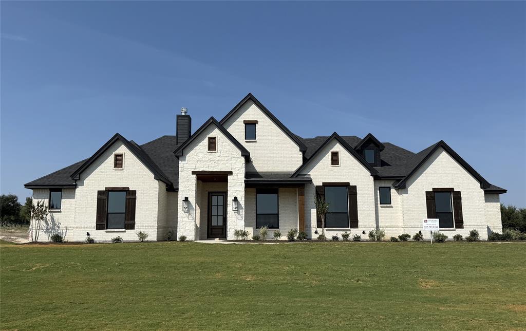 Awesome new plan by Builder in this exclusive new neighborhood in Aledo ISD! Brick and Stone home with black roof, many builder upgrades including Quartz Countertops, Luxury Vinyl flooring throughout all main areas. This home boasts 4 bedrooms, 3 full baths with a huge Covered Patio for entertaining. Plenty of extra room on this 1 acre lot, new construction, Estimated Completion date September 2025, CALL TODAY.