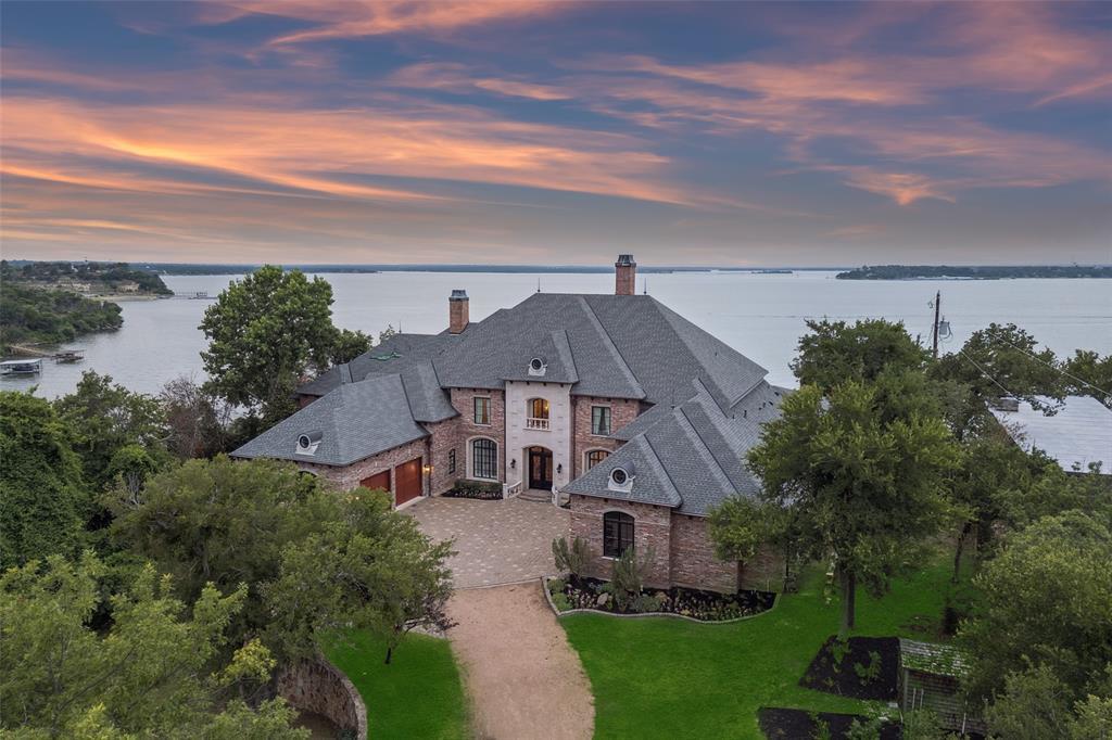 Experience the pinnacle of lakeside luxury in this extraordinary custom home nestled on the shores of Eagle Mountain Lake. Thoughtfully designed for both elegant entertaining & everyday comfort, this expansive residence boasts 5 bdrms, 6 full baths, 2 half baths & an unmatched blend of modern amenities. From the moment you step through the grand entrance, panoramic lake views captivate your attention through the family room’s expansive windows. To one side, a formal dining space sets the tone for special occasions, while to the other, the secluded primary suite serves as a private sanctuary. This lavish retreat features a cozy sitting area w-a see-through FP, dual spa-inspired bathrooms, heated floors, a wet bar, 2 large WIC's + a connected fitness room. A steam shower, safe room & private laundry area complete the suite’s luxurious amenities. Gourmet kitchen is a culinary masterpiece, fully equipped w-top-of-the-line Viking Apps including a 6-burner gas cooktop, double ovens, full-size BI wine fridge, two dishwashers + a spacious island w-a trough sink & foot-pedal-controlled faucet. Lighted cabinetry, pantry & a BI fridge elevate both style & function. A secondary suite w-its own kitchen + full bath provides ideal accommodations for guests. Upstairs, 3 additional bedrooms accompany a large game rm, media rm + private office—each offering access to balconies overlooking the lake. Step outside & relax in the infinity-edge pool, cook up a feast in the outdoor kitchen, unwind by the fire pit, or rinse off in the outdoor shower. The covered patio is enhanced w-retractable shades for all-season comfort & a boat dock trolley offers easy lake access. There’s even a dedicated dog run. Smart home is loaded with high-end features including Control4 automation, foam insulation, water filtration system + abundant storage. Car enthusiasts will appreciate the three 2-car garages—including one located beneath the main garage w-internal access. Enjoy unrivaled lakeside lifestyle.