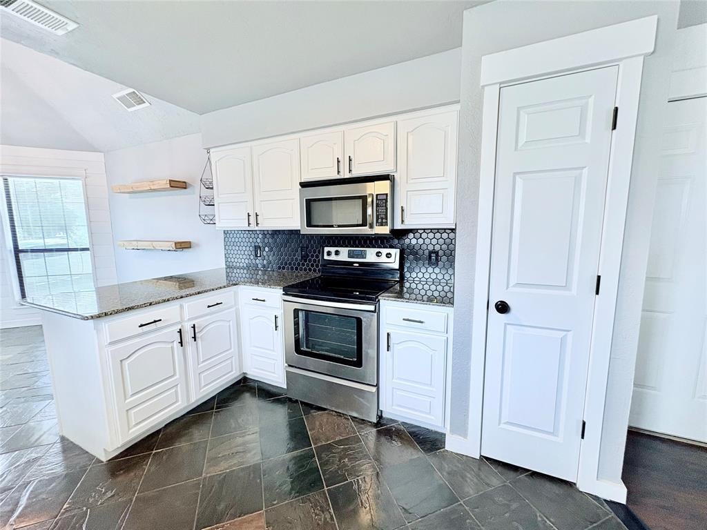 Inside, you’ll be greeted by fresh interior paint, smooth retextured ceilings, no popcorn here, and recently installed flooring that flows through almost all of the home. The kitchen is a true centerpiece, featuring a stylish shiplap accent wall, updated backsplash, refreshed cabinets with fresh paint and stain and hardware, and floating shelves for a designer touch.