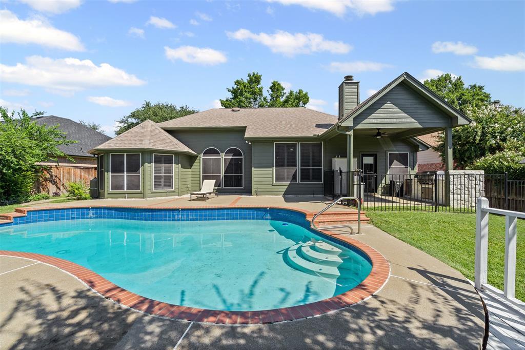 Pool, outdoor kitchen, and a private cul-de-sac lot, this home was built Texas living! Set at the end of the quiet cul-de-sac in Mansfield ISD, this beautifully updated home offers privacy, style, and function. Plantation shutters and oversized windows fill the home with natural light, showcasing new flooring, fresh paint, and updated recessed lighting. The layout features four bedrooms plus a dedicated office, with the primary suite split from the secondary bedrooms for added privacy. A gas fireplace with custom mantel anchors the living area, while the kitchen and open spaces flow easily for everyday living and entertaining. Step outside to a backyard retreat with a deep 13,000-gallon pool, outdoor kitchen with water, propane grill, and mini fridge. With a brand new roof and foundation repairs scheduled for completion before closing, new buyers will enjoy added confidence alongside recent HVAC, insulation, and cabinetry updates. Move-in ready and designed for Texas living, this home combines modern updates with a sought-after Mansfield location.