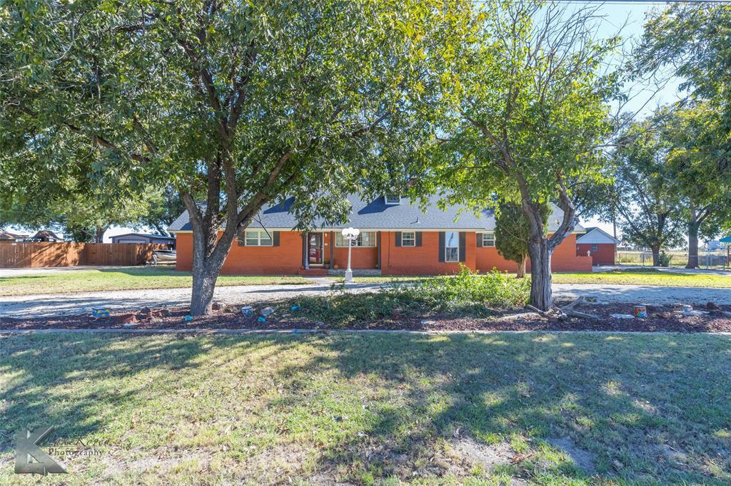This beautifully updated brick home sits peacefully on the outskirts of Haskell, offering a serene country setting with open fields behind the property, perfect for enjoying breathtaking morning sunrises. Inside, the home features a fully renovated kitchen with custom cabinetry, a decorative tile backsplash, updated appliances, and a fresh, modern layout ideal for everyday living. The home includes three full bathrooms, each thoughtfully upgraded with elegant finishes and fixtures to provide comfort and convenience for family and guests. Fresh interior and exterior paint and updated flooring throughout create a cohesive, contemporary feel. The cozy living room centers around a gas fireplace with remote control and a custom-designed screen, adding warmth and charm to the space. Additional improvements include a new roof, newer windows throughout the home for improved energy efficiency and natural light, new gas lines for safety and reliability, and a whole-house intercom system with WIFI connectivity for seamless communication and smart home integration. Outdoors, a spacious covered patio with a private gate provides a shaded retreat for entertaining or quiet reflection, overlooking a fenced backyard with mature trees and open views. The property also includes a one-car garage and a one-car carport, offering secure parking and extra storage options. The expansive concrete driveway leads to a detached brick outbuilding, perfect for hobbies or equipment. With its blend of rustic charm and modern convenience, this home invites you to slow down and savor the beauty of country living—just minutes from town, yet worlds away from the hustle.
